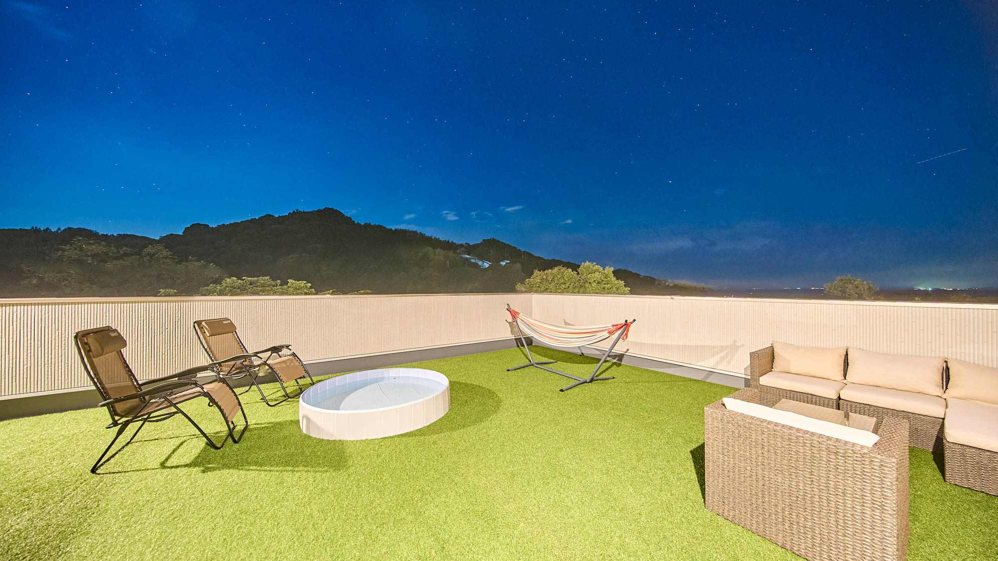 ルーフバルコニーから空を見上げれば、満天の星空がご覧いただけます。まさに天然のプラネタリウムです。大切な家族と愛犬と、ロマンチックなひとときをお過ごしください。08:00